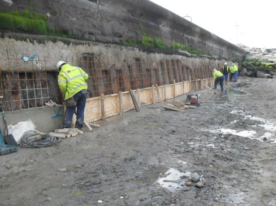 The project commenced late March 2012 and comprised of a single faced reinforced concrete wall 200mtrs long and 2mtrs high the project is tidal work. The project for the reinforced concrete works was programmed for 8 weeks but was completed in 4 weeks.
